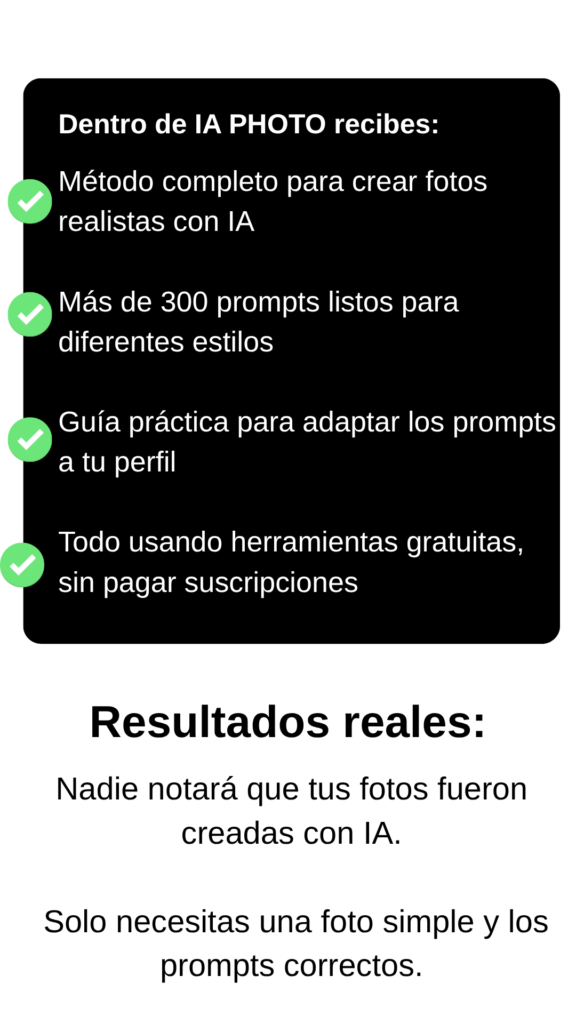 ¡Sí! El método es simple, directo y está hecho para principiantes. Vas a aprender todo paso a paso, incluso si nunca antes has usado ninguna herramienta de IA.
